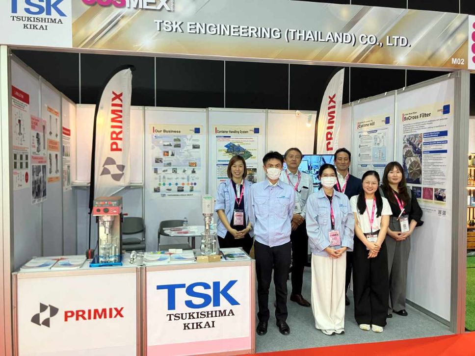 TSK ENGINEERING (THAILAND) CO., LTD. and PRIMIX Corporation participated in the COSMEX 2025 exhibition, held from November 4th to 6th, 2025, at BITEC, Bangkok. The event attracted approximately 24,000 visitors, making the exhibition highly successful. Many attendees stopped by our booth as well.